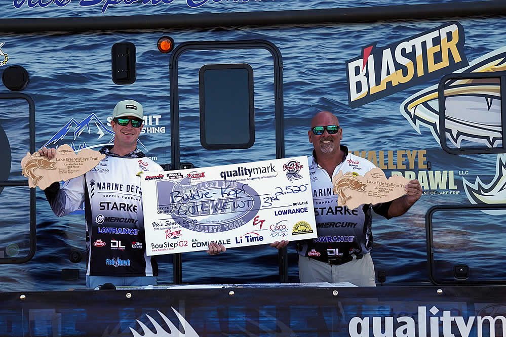 Tournament pros John Hoyer, out of Iowa, and Pat McSherry, from Minnesota, finished just out of the top five with 34.06#, winning $1,125. John Hoyer has paved the way for Lowrance Active Target FFS and casting on Lake Erie, as he won the National Walleye Tour last year in Port Clinton and two years ago in Dunkirk. Just shows that casting at walleye and being selective can be a productive method for catching walleye on Lake Erie.